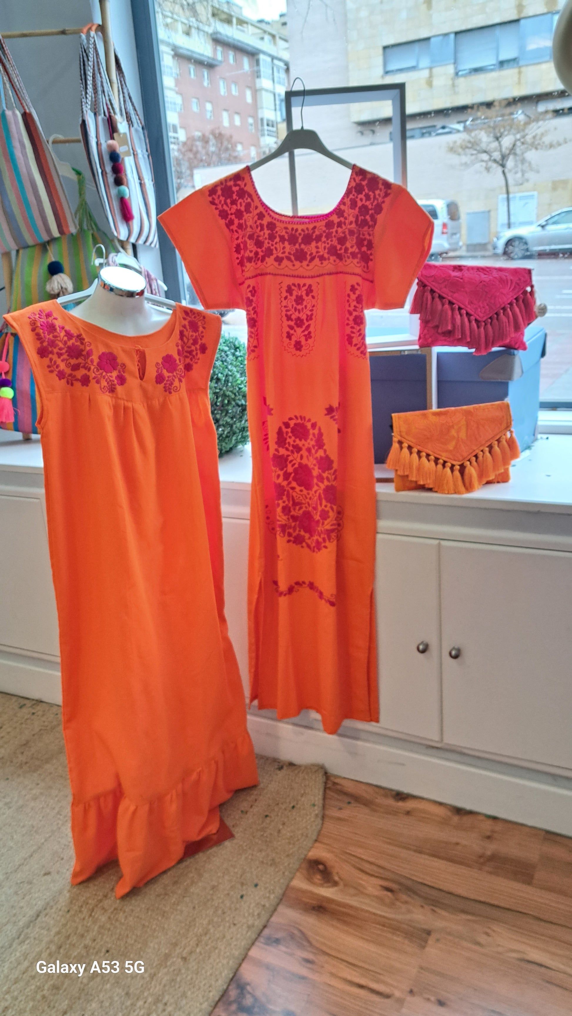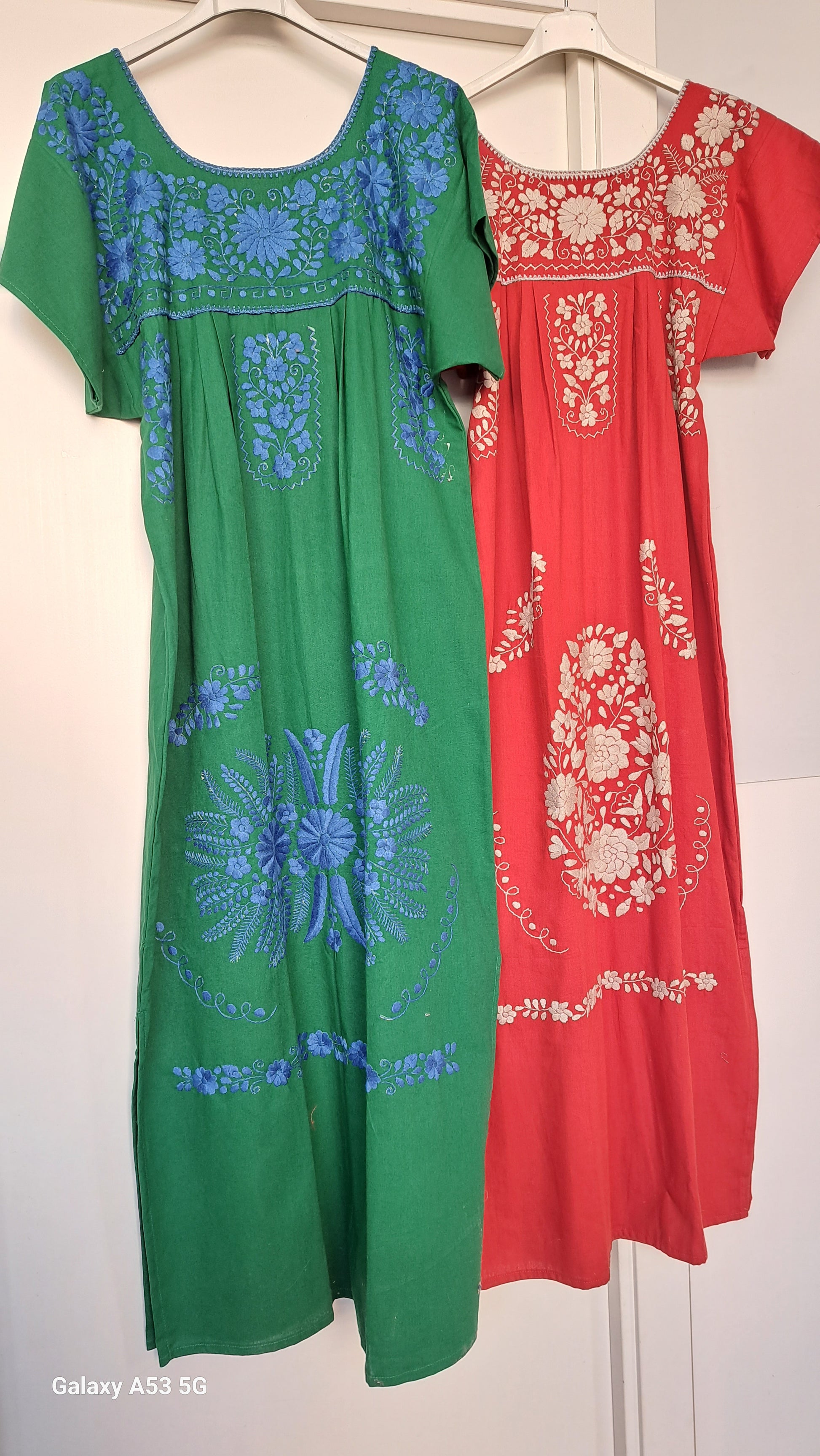 Vestido bordado artesanal con manga corta clasica